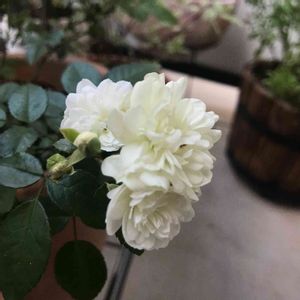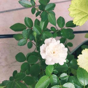 今、唯一咲いているミニバラ、グリーンアイス。 真っ白で美しいです😊