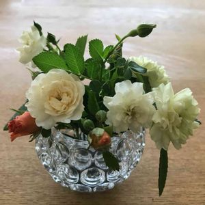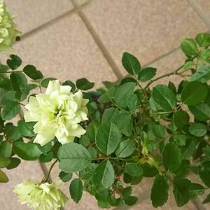 ミニバラ グリーンアイス 3連休の最終日 園芸店へ 屋根はあるものの、外と同じ 汗だくで💦物色 3鉢500円 やす〜😊 前から欲しかった子 後の2鉢は母と妹に🎁