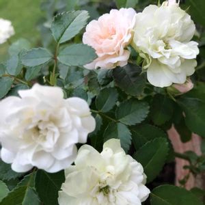 今日ミニバラのローマ・フォーエバーが咲き出しましたー(*≧∀≦*)(右下と左下のピンクの花) まだ蕾もついてますのでこれからも期待。 午前中しか日が当たらないので西日も当たらず頑張って花を咲かせてくれてますv(・∀・*) 左上はバミューダ・フォーエバー。暑さやまだ苗が小さいこともありなので花はちょっと形が良くないですが、色が元気をくれます♪(o・ω・) 右上は人気者のグリーンアイスです。いつも涼しげな花を咲かせてくれますねっ♪(o・ω・)