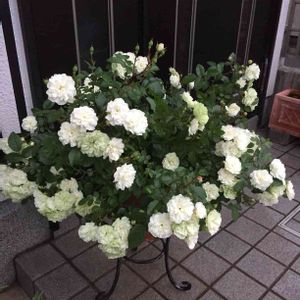 お庭にあるバラは こちらのグリーンアイスと ホワイトクリスマス。 ホワイトクリスマスは 既に咲き終わってしまいました。 いいお顔撮れずごめんね。
