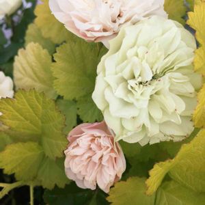 “パールコルダナ” & “グリーンアイス” パールコルダナは真ん中 がホイップクリームみたい… 一応ミニバラさんです😉 グリーンアイスは一番好き なバラさん♡ 昨年の母の日に自分で買った ので、ちょうど1年ぐらい経ち ました♫ 数倍に大きくなって、沢山の ブーケのように咲いてくれて ます(*´꒳`*) 色の変化も楽しみでーす✨