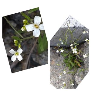 ミヤマハタザオ(深山旗竿) アブラナ科ヤマハタザオ属 徳島県、剣山の岩場に咲いていました。 白色4弁花で大きさは1cm未満の小さな花。 ミヤマと名がついているように高山で咲いている花のようですね。