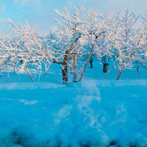 すももや笹など💛 裏山雪景色❄️ 粉雪がまだ舞っています。