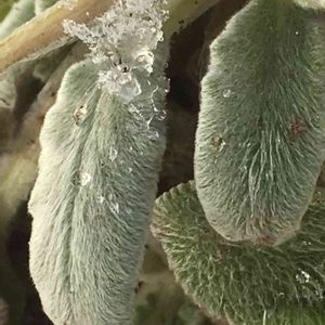 今朝のラムズイヤー。雪の中からちょっと見えていました。 超拡大してみました。