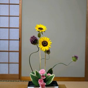 今日のお花に投稿します❤️ ヒマワリ🌻です💖 7月のお花教室で生けた 花です🌻🌻🌻 教材にヒマワリがありました♥️💓💖