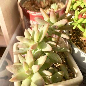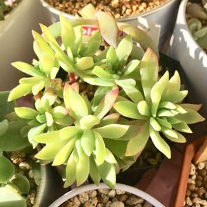 こんにちは✩°。⋆⸜(* ॑꒳ ॑* )⸝ 昨日娘と2人で機種変をして データ移行だったり何だったりでバタバタですw タニパトは欠かせないので今日も朝からタニパト✨ 雨の予報だったけど快晴(*Ü*)ノ"☀ 雨曝しにした子たちが少し心配になるくらいの強い日差しです(^ω^;);););) 昨日はやっと遮光率50%の遮光ネットを見つけました♥️ 去年は75%でかなり徒長してしまったので 5月になったらこの遮光ネットをかけるつもりです(* ॑꒳ ॑* )⋆* 葉焼けしないといいなぁ~💦 今日のpicは 「静夜」さん 暖かくなってきてから子吹きが凄くて💦 嬉しい悲鳴です((( 。>艸<)-3 葉挿しちゃんも沢山居るのに💦 とにかく、親株の静夜さんは形が崩れまくり( ꈨຶ ˙̫̮ ꈨຶ ) どうにかこうにか蒸れないように気をつけてあげなきゃ!!