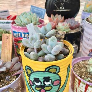 おはようございます✩°。⋆⸜(* ॑꒳ ॑* )⸝ 今日のpicは 先日あやっちさんからいただいたリメ缶に植えた 「星美人」 どんどん子株が増えてるので今まではリメプラ鉢に入ってもらってましたが ひと回り大きなあやっちさん缶にお引越し〜٩̋(ˊ•͈ω•͈ˋ)و 大きくなぁれー(๑>ᴗ<๑)❤ …植え替え時に粉が随分取れちゃった(^ω^;) 小さなクマちゃんもこっそりIN❤