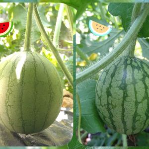 空中栽培中の小玉スイカ 果肉が赤色❤️(左)と黄色💛(右) 早く食べたいなぁ〜😋 夏日続きで🥵 植物も私も水分を欲してます💧💦 2025.7-14