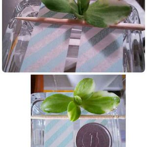 風に乗って雨がやってくるので、いつもは雨でも大丈夫なうちのベランダの多肉ちゃん達もお水を貰っている様子です。 風は大敵だなぁ。 さて、花月錦ちゃん。 水挿ししていたままの方も根っこがかなり伸びたので、土の方と同居させてみました。 育ち具合に明らかな差が…。 艶プリ具合も全然違う。 個体が小さいうちはお水のサポートが必要だと思わされます。