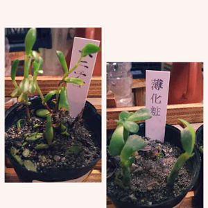 HCでは葉っぱがほとんど無いようなカサカサの枝の多肉植物がひとつ50円で売られていたので連れてきました。 見る影も無い🙎 薄化粧は再生できるかわからないけど、紅稚児は葉っぱが沢山落ちてて、葉挿し可能な種類なので期待出来そう。 プ⚫トリーフの多肉の土が気になってたんで見てたんだけど、キノコが大きく育ってたり、ナニカの根っこがびっしり育ってたりしてたんで、栄養入りの土も微妙だな、と。湿ってるし。 買うならちゃんと中身を確認しないとコレは買えないと学習してきました。 そこのHCの管理が悪いのかもしれないけどね。