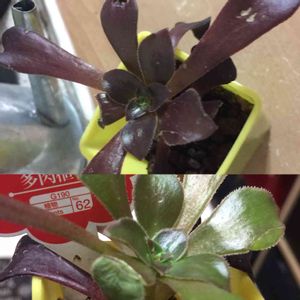 購入から1週間で真っ黒けっけ😳 この変化!!!黒くなるのは元気なの? 相変わらず、葉は、ヘニョンヘニョン_(-ω-_)⌒)_ 流石に、屋外に出しっぱで寒さにやられたかな😵 土もカラッカラだったので 葉が、回復するまで1度水やりして、暖かい場所へ💚 元気になるんだよー😭