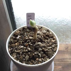 丈のない鉢に植えてしまったため、元気なのはいいんだけど新芽は4センチ伸びた。ホント筍ように伸びちゃった…。札は気にしないで下さい(=^ェ^=;)…何となく全ての植物に名前を付けて育ててます( ´ v ` ;