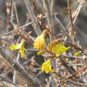 レンギョウ(連翹) 春の訪れを告げる花なのに、12月の極寒に狂い咲きです。