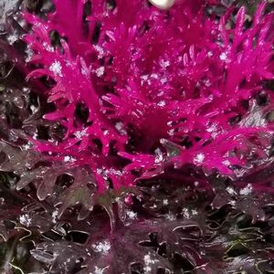 いつも光を反射してきらきら輝いているハボタン光子 今日は光じゃなくて ❄と一緒にキラキラ🌟きれい 氷のトゲトゲ 雪の結晶、肉眼でも見えるんですね❄🤗 朝の路面凍結、霧にはお気を付けて下さいね🍀*゜
