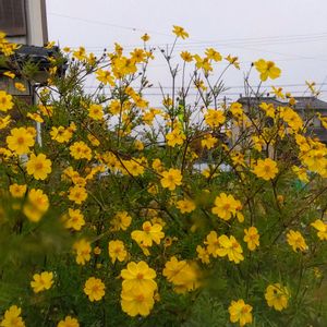 霙に耐えてるキバナコスモス💛 1時 間前には🌈が出てたのに💦 霙は雪にカウントするそうなので初雪ですね❄️ ②1時間前の虹