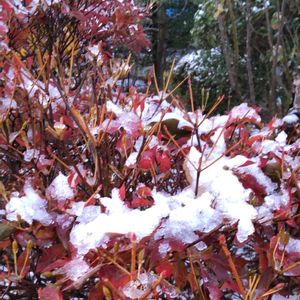 昨日は初雪⛄️ 紅葉した🍁ニシキギの上にもうっすらとゆき❄️ 今日もチラチラ降ってます。