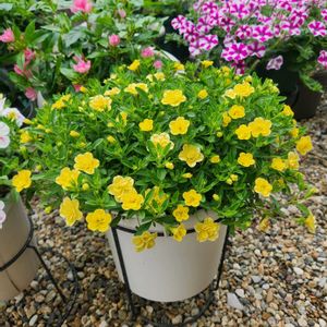 スーパーベルダブルイエロー 今年の新色です。爽やかレモン色🍋 7号鉢に植えました。 摘芯を繰り返して、ちょっとづつ大きくしていきたいですね〜✂️