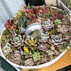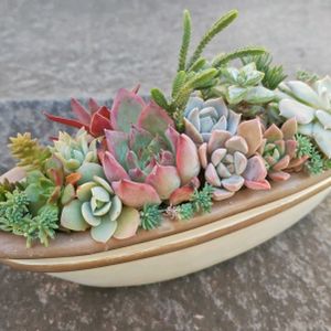 多肉の寄せ植え🍃 秋の寄せ植え✨第5弾✨ 生花用のボート型の花器に… 相変わらず普及種の多い我が家の寄せ植え💦