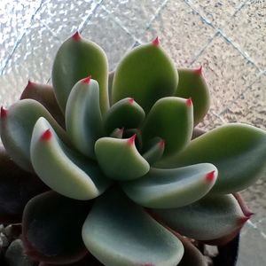 七福美尼✨ まだまだみどりんだけど、ピンクの爪がとっても可愛い🩷 群生するタイプのはずなんだけど、一向に子株が出る気配はありません…( ´^`° )グスン これは春にチョンパ✂️だな!