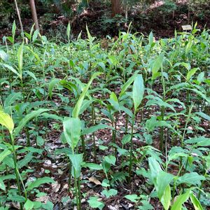 公園の森の中に生姜や茗荷のような葉の植物が群生している。 未だ花は咲いてない。 🔍すると「ミョウガ」、でもなんか違う気がする。