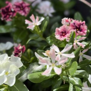 ニチニチソウの寄せ植え🌱 ミラシリーズ モネさんは八重が無くなってきました😅 かざぐるまやっぱり可愛いなぁ〜💓