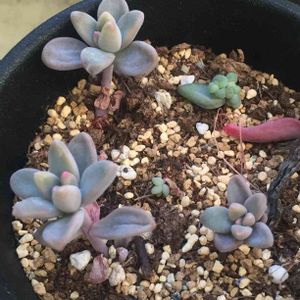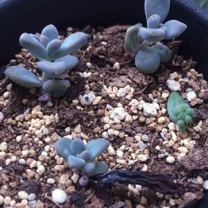 暴れてた寄植えを解体した時に、 元気そうな葉を品種毎に残しておいたら もう芽や根が出てる∑(๑º口º๑)!! 特にクラプトペダルム系の生命力にはいつも感心させられる