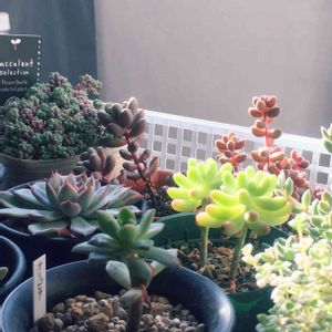 暴れ多肉の中の美人さん 紅葉したレズリーがちょっと艶っぽくて好き( *ˊᵕˋ ) 朧月は春先にヒヨドリに齧られたけど、元気です 右上のは名前分からないんだけど、 多分薄氷かなぁ 一時は白牡丹かと思ったけど、葉が薄いもんね