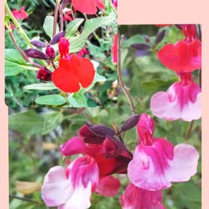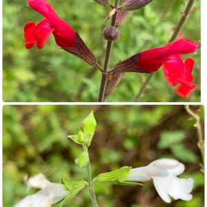🌸チェリーセージ🌸 ずっと咲いてる優れもの😃 けど、いつもは左上の 真っ赤っかの花なのに ココ最近はこんなツーカラーになってきてる😅 可愛いんだけど、何故かなー? こんな色変わりは 初めてです💧 2本がこんなふうに色変わりしてて、 あと2本は真っ赤っかのままです。 ホットリップスはもっとハッキリとしたツーカラーだよね? 日焼けしたのかな?🤔