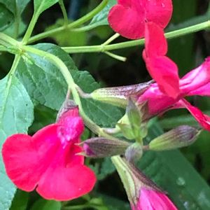 2019/9/7 チェリーセージ ホットリップス💋 名前と花の形がとても気に入っている、、割には伸び放題の放置状態で、一年ほど前にようやくバッサリ切り戻しました。今年も無事花がついてよかった🥰でもいつもよりピンクが強い気がする🤔