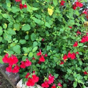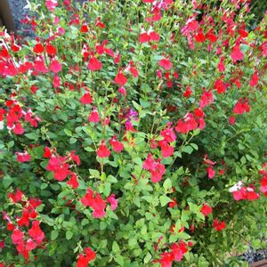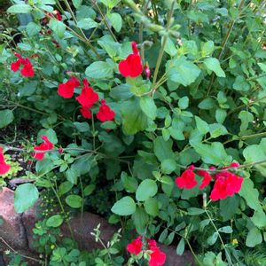 4/22投稿した チェリーセージ🍒 ちゃんと 紅白の 模様に なってきました。 切っても 切っても すぐに 生えてくる。 冬には 根元まで 切っちゃうけど 毎年 こんな感じです🌿 投稿 1枚目