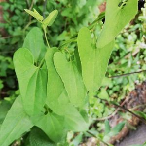 名札に「ウマノスズクサ」と書かれていました。 パチリ 名の由来は、基部から6裂して垂下する果実が、馬鈴に似ているからとのことです。 果実ができないと解らないですね。😊
