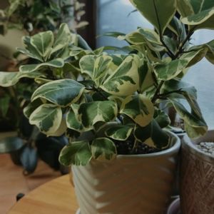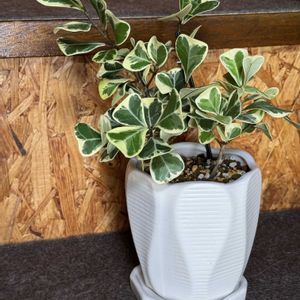 誕生日記念のお迎え その① フィカス トライアンギュラリス 斑入りの葉っぱとその形に一目惚れ🥰 セラミスに植え替えしてみました! 初めて自分で植え替えでちゃんと出来たか心配...成長見ていくぞ!