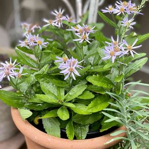 “カリメリス ナナブルー” 小さい花好き❤️ 凄い勢いで根がはるもんで…まっぷたつにわけてみた(* 'ᵕ' )☆