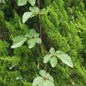 実家の庭で、ニョキニョキ🌿 名前教えて下さい❗️ 「ヤブガラシ」と教えていただきましたm(._.)m 強い雑草❗️ は~抜かなくちゃ😂