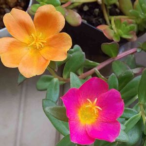ポーチュラカ オレンジ🧡とピンク🌺が咲きました😀