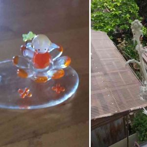 シロタエギクが一本だけヒョロットなって、先には何やら蕾? ガラスのエンジェル ちょっとわかりにくいですね🤣 エンジェル祭りに参加させていただきます🎶 ズッキューン💘💘💘💘💘