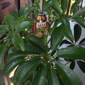 シェフレラに🦉乗せてみました😀 フクロウ祭り参加しま~す 🦉🌱🦉🌱🦉🌱