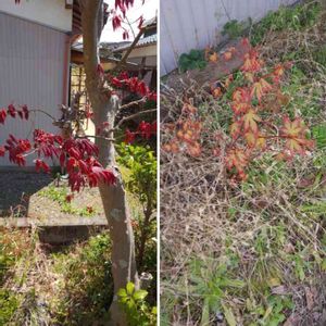 実家で放ったらかしゾーンをやっと草むしりしました 何やら一本伸びてる木が❗️ 名前わかる方 教えて下さい❗️ 気がつかないくらいジャングル化してました😅