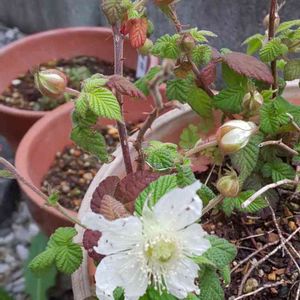 これは、野イチゴの花かな…? 実家のブランターで発見❗️ 「クサイチゴ」でした🤗
