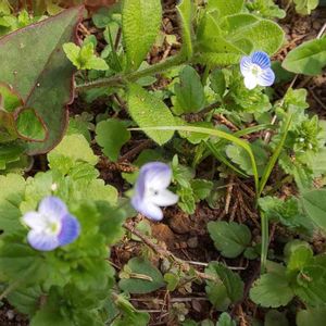 実家の庭で発見❗️😊 GSで見た事あると思うだけど、名前がわかりません 教えて下さい❗️ 「オオイヌノフグリ」と、教えていただきました😊