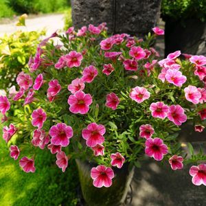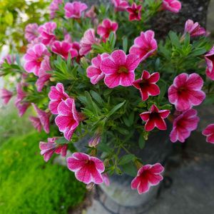 雨降らずで何日たったでしょうか 今日は豪雨とはいきませんでしたが、 少しだけ地面が濡れる恵みの局所的雨が降りました🌧️ 梅雨時期に切り戻したカリブラコアがまた咲きそろってきました✌