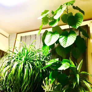 お掃除タイムにぎゅーっと寄せられて、 にわかジャングルな感じの葉っぱ達😙 観葉植物が増え、掃き出し窓から庭へ出にくい😬と家族からブーイングですが、まだまだ増やしたい病です✨