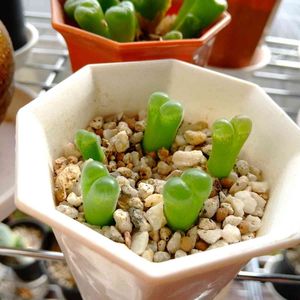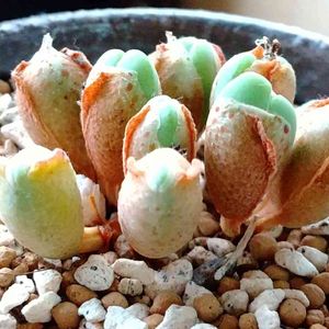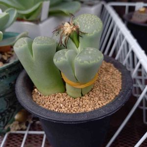 リトープス すんごい徒長してるから強制脱皮してみたら中にお子様いなかった〰️😱😱😱 とりあえず輪ゴムで縛っておいた😅 コレどうなるかな💧