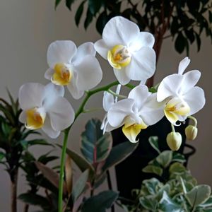 茎が黒いこちらの胡蝶蘭。 花色と相まってフィカス・バーガンディとお似合いだってことに気がついてしまった夜です✨ お休みなさい