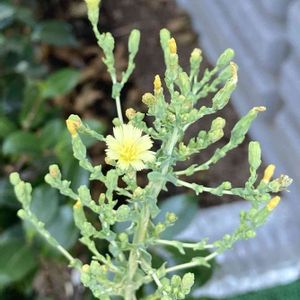 フリルレタスの花🌼 春にチュウリップのプランターに現れたフリルレタス🥬 こぼれ種? 下から順々に頂きサラダにしました。 暑くなり茎が50c mも伸びて花を咲かせました。朝早く咲いて萎んでしまいます。 小ちゃなタンポポのよう💕 キク科 蝉の鳴き声が聞こえてきました。 今年は梅雨明けが早すぎて、蝉さんが追いかけているようです。🤔