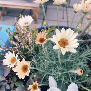 こんにちは🍀 ユキヤナギ咲きました☺️ 嬉しい季節、待ってましたよ❣️ 2枚目はこの間のフライング寄せ植え🤣 お買得でも元気で育ってます〜👍