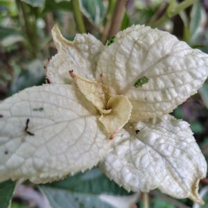昨日とどけ忘れた恋路ヶ浜の姿。 じつは斑入りの葉と両生花が開く前のこの青いつぶつぶにひかれて育てています💚🩵💙