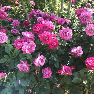 東武トレジャーガーデンのイントリーグ。咲き始めの濃いめのマゼンタ色から薄めの赤紫になっていくのが綺麗なバラだなと思います。