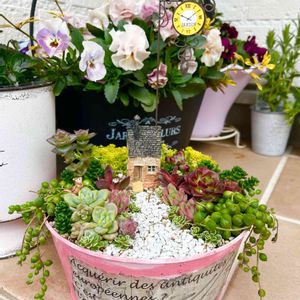 小さな寄せ植えも作ったよ 可愛いく出来たと自画自賛😆💗 窓辺に置いて見ていたいけど、色がわるくなるかなぁ…