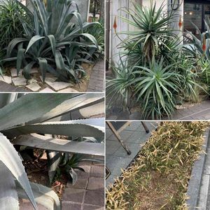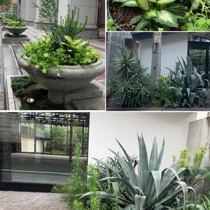 通院完了😚変化なしでした♪ いつも通院の帰りにチェックする睡蓮鉢が見あたりませんでした😢 1月に見た時は置いてあった場所がわかるくらい草が生えておらず寒い時期は表に出ていないのかと考えていたのですが、今回はその場所もツユクサがびっしり生えていました😔残念 カフェが入っていた建物の植え込みのアガベとかも奥のガーデンも気に入っていましたが、空き店舗に😂 アロエの花殻もそのままで雑草も抜かれておらず💦今後どうなるのかな? 通院の楽しみの植物観察は別の場所を見つけなくてはです🤔 超有名なブランドショップの前はキレイで立派な植栽がずらーっと10個以上も(〃艸〃)さすが!!✨